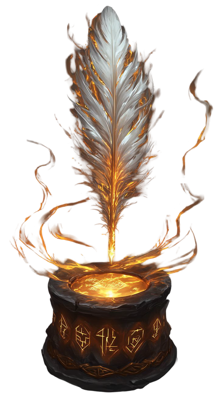 Dicen que fue forjada con los últimos trazos que el mismísimo destino escribió antes de entregarle el mundo al libre albedrío. Esta reliquia toma forma de un conjunto de herramientas de escritura flotantes: una pluma blanca cómo la nieve, tinta dorada y un pergamino que nunca se acaba. Solo el portador puede verlas, tocarlas y usarlas, permitiéndole escribir en el aire y reconfigurar los hilos invisibles que lo atan todo.